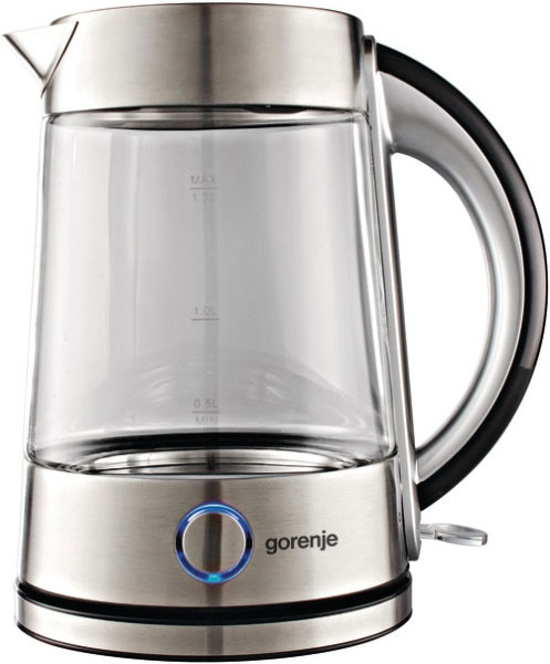 Электрочайник GORENJE K 17G объем 1.7 л индикация включения закрытая спираль установка на подставку в любом положении корпус из стали и стекла вес 1.1 кгGORENJE K 17G
