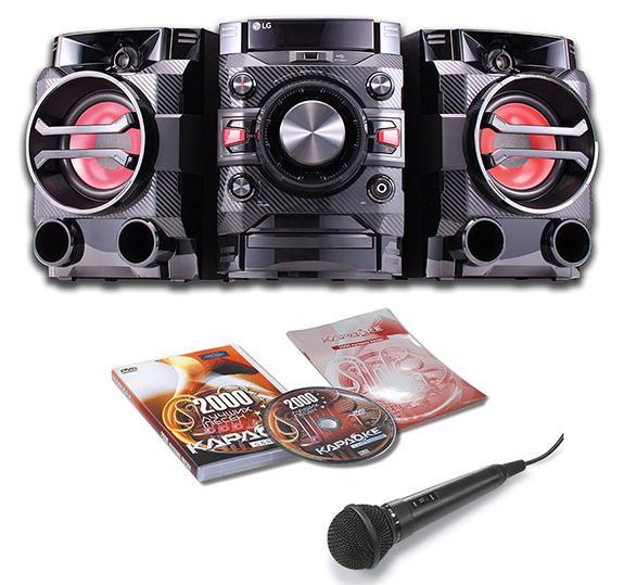 Музыкальный центр LG DM5360K минисистема мощность 2x100 Вт воспроизведение DVD радиоприемник FM поддержка форматов MP3 воспроизведение с USB подключение: HDMI, Bluetooth линейный аудиовход функция караоке