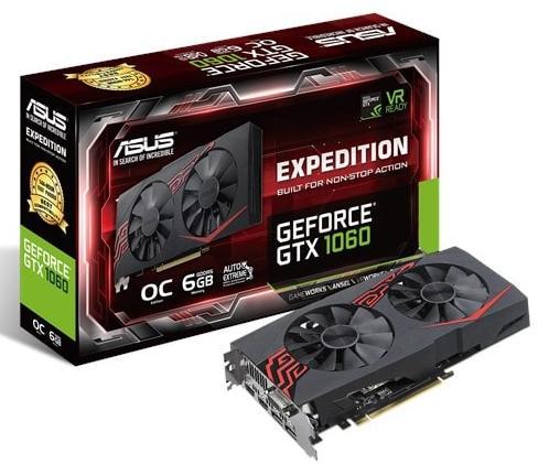 Видеокарта ASUS EX-GTX1060-O6G Производитель: ASUS Тип: Видеокарта GPU: GeForce GTX 1060 Объем памяти, ГБ: 6 Тип памяти: GDDR5 Интерфейс: PCI Express 3.0 x16 Система охлаждения: активная Частоты работы GPU, МГц: 1594 (Boost - 1809) Частоты работы памяти, МГц: 8008 Шина памяти, бит: 192 Выходные разъемы: Dual Link DVI-D (HDCP), 2хDisplayPort, 2хHDMI (2.0)