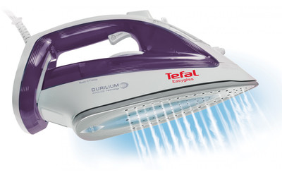 Утюг Tefal FV3955E0 Мощность 2400 Вт Объем резервуара для воды 270 мл Подошва Durilium Airglide Постоянная подача пара есть, до 35 г/мин Паровой удар есть, 125 г/мин, вертикальное отпаривание Система защиты от накипи есть Система самоочистки есть Противокапельная система есть