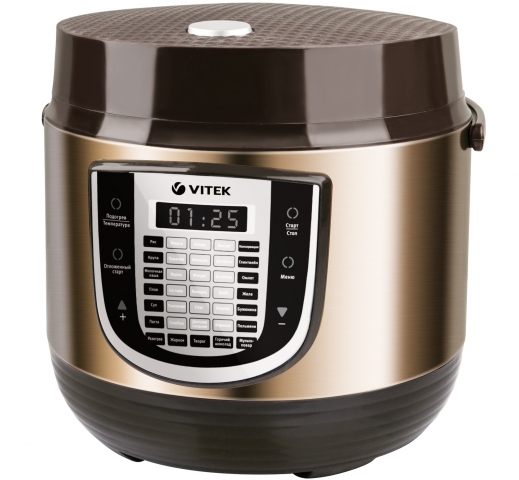 Мультиварка Vitek VT-4280 BN Мощность (Вт) 860 Тип нагрева Термический Приготовление под давлением Да Обьем, л 5 Внутреннее покрытие Антипригарное Материал корпуса Пластик Термоизолированная ручка Да Блокировка крышки Да Тип управления Электронный Цифровой дисплей Да Подсветка дисплея Да Цвет подсветки дисплея Белый Индикатор времени приготовления Да Индикация режима работы Да Функция \"Мультиповар\" Да Максимальное время приготовления (час) 24 Автоматическое поддерживания тепла Да Максимальное время поддерживания тепла (час) 24 Отсрочка старта (час) 24 Количество автопрограмм 35 Приготовления на пару Да Режим \"Каша\" Да Режим \"Плов\" Да Режим \"Суп\" Да Режим \"Жарка\" Да Режим \"Тушение\" Да Режим \"Йогурт\" Да Режим \"Гречка\" Да Дополнительные программы Крупа Лопатка Да Пароварка Да В комплекте дополнительно Половник Защита от перегрева Да Высота, см 27 Ширина, см 28 Глубина, см 28 Цвет Мокко Вес, кг 4.8 Страна Китай Особенности Книга рецептов