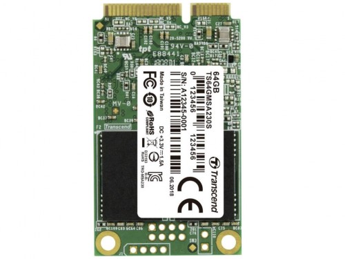.mSATA SSD 64GB Transcend "TS64GMSA230S" [R/W:550/400MB/s, 35/50K IOPS, SM2258H, 3D TLC]