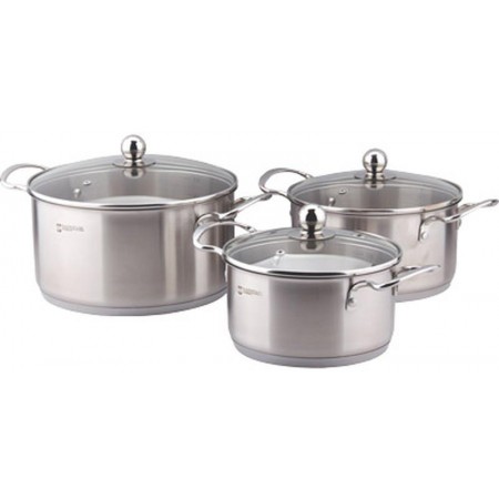 Набор кастрюль Rainstahl RS-1064 Количество предметов: 6 Материал: нерж. сталь Материал крышки: стекло Тип нагрева: универсальный