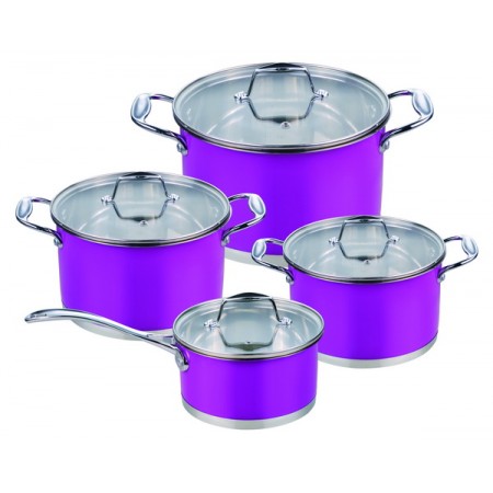 Набор посуды Rainstahl RS-1084 PR Количество предметов: 8 Размеры 1: диаметр - 16 см высота - 8.5 см объем - 1.7 л Размеры 2: диаметр - 18 см высота - 9.5 см объем - 2.4 л Размеры 3: диаметр - 20 см высота - 12 см объем - 3.7 л Размеры 3: диаметр - 22 см высота - 13 см объем - 4.9 л Материал: нерж. сталь Материал крышки: стекло Тип нагрева: универсальный