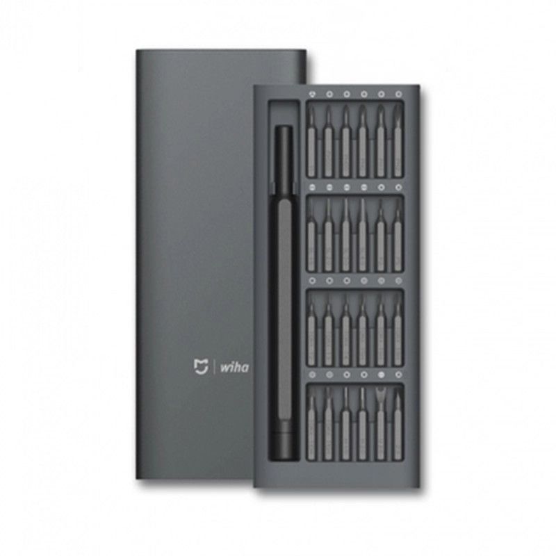 Xiaomi MiJia Wiha Набор отвертка с 24 насадками Цвет Черный Размеры 168 x 67 x 17 мм Комплектация Магнитный держатель Алюминиевый пенал для хранения 24 магнитные насадки (?2.3, Y1, U2.6, H1.5, H2.0, SL1.5, SL2.0, SL3.0, SL4.0, PH000, PH00, PH0, PH1, PH2, P2, P5, TR5, TR6, TR8, TR10, TR15, T2, T3, T4)