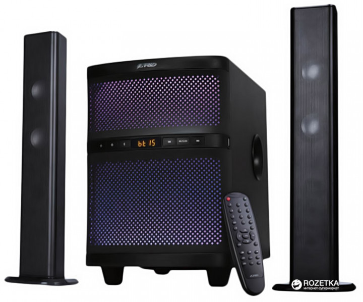 F&D T-200X (black) Акустическая система F&D T-200X для ценителей музыки. Модель прекрасно впишеться в интерьер вашего дома благодаря оригинальному дизайну и компактному размеру. Инновационная светодиодная подсветка перенесет вас в красочный мир наслаждения музыкой. Корпус сабвуфера из МДФ обеспечивает естественное качество звучания и мощные басы. Преимущества: Инновационная светодиодная подсветка сабвуфера LED дисплей с широким углом обзора USB ридер с поддержкой WMA и MP3 формата Встроенный цифровой FM тюнер с памятью до 100 станций Полноценный пульт дистанционного управления. Bluetooth v4.0 Материал корпуса: Сабвуфер: МДФ Сателлиты: Пластик Выходная мощность: Колонки: 2 x 17.5 Вт Сабвуфер: 35 Вт Диапазон частот: Колонки: 135-20000 Гц Сабвуфер: 30-104 Гц