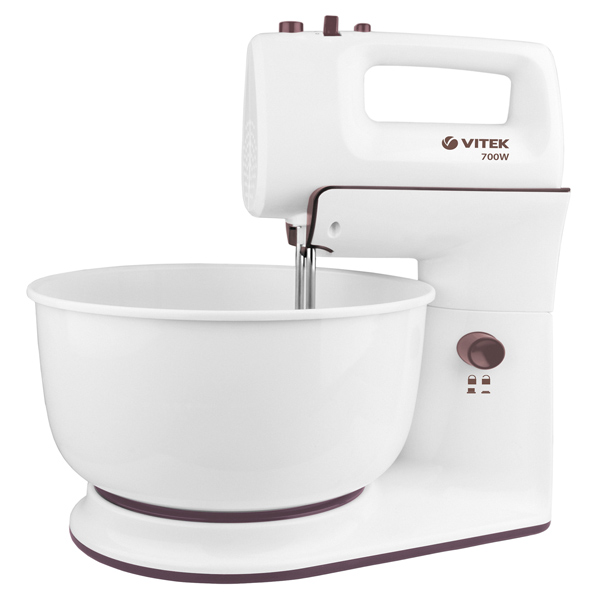 Миксер VITEK VT-1416 Страна КНР Потребляемая мощность 700 Вт Тип управления механический Управление 5 режимов Турборежим Да Колебание миксера в горизонтальной плоскости Да Металл. венчик д/взбивания 2 шт Крюк для замешивания теста 2 шт Подставка с вращающейся чашей Объем чаши 4.1 л Материал чаши пластик Материал корпуса пластик Длина сетевого шнура 0.8 м Цвет белый Вес 2.66 кг Базовый цвет белый