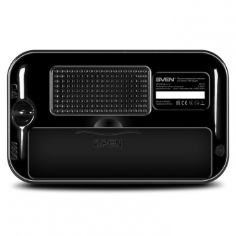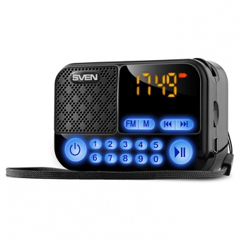 Портативная акустика SVEN PS- 25 Black, 3w, FM, USB flash, microSD, power:1200mA, USB, DC-5V - http://www.sven.fi/ru/catalog/portable_acoustics/ps-25.htm В линейке портативной акустики компании SVEN появилась модель, напоминающая радиоприемник – PS-25. Однако не обманывайтесь её внешностью – функционал этой колонки гораздо шире. Во-первых, модель, помимо встроенного FM-тюнера, может проигрывать музыку с microSD карт памяти и флешек. К ней можно подключить наушники и использовать как плеер. Во вторых, у неё есть удобный LED дисплей, на котором отображается время, частота радиоволны, номер проигрываемого трека, уровень заряда аккумулятора и т.д. В третьих, в отличие от старых радиоприемников, модель очень компактна и с легкостью поместится в кармане. У PS-25 подсвечиваются кнопки, так что настройки колонки можно менять даже в темноте. Питание колонки происходит от съемного литий-ионного аккумулятора. Антенна встроена в шнур для переноски. Купить портативную акустику SVEN PS-25 вы можете в магазинах бытовой техники вашего города. LED-дисплей Воспроизведение музыки с USB flash и microSD card памяти Встроенное FM-радио и часы Разъем для подключения наушников Выходная мощность (RMS), Вт 3 Частотный диапазон, Гц 120 – 20 000 Диапазон частот тюнера, МГц 87.5 – 108 Размеры динамиков, мм O 33 Воспроизведение музыки с носителей памяти USB, microSD Источник питания литий-ионный aккумулятор: 1200 мA · час USB: DC 5 V Размеры изделия, мм 92 х 56 х 32 Вес, г 120 Цвет черный