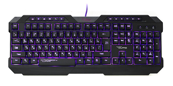 Gaming Keyboard Qumo Fallen, Multimedia, Spill resistan, Anti-ghosting, Backlight, Black, USB - http://qumo.ru/catalog/gaming-keyboards/FALLEN/ Ультратонкая клавиатура QUMO Dragon War FALLEN обладает противоскользящим покрытием, и очень удобна в использовании. Особый космический шик клавиатуре придаёт лазерная гравировка символов и LED-подстветка и подсветка рабочей области, которые позволяют использовать её в темноте. Яркость подсветки можно регулировать по своему усмотрению. Клавиатура очень чувствительна к нажатиям. Мгновенная реакция устройства увеличивает шансы геймера обойти своих соперников в самой динамичной игре! Для удобства общения с вашим верным компьютерным другом в клавиатуру встроены мультимедийные кнопки. Чтобы в самый разгар битвы вы не вылетели в лузер лист, мы внедрили технологию ANTI GHOST - 19 клавиш, которая позволяет клавиатуре считывать одновременно команды от 19 нажатий. Так что если у вас больше 10 пальцев, или вы играете с другом на одном компе, или ваши передвижения по клавиатуре настолько быстры, что вы движетесь шустрее, чем отмыкаются разъемы на "свитчах", то эта клавиатура для вас) Также есть еще такие приятные мелочи как, - влагозащита, увеличенный ресурс работы кнопок, прочный корпус, ножки, резиновые вкладки - чтоб не скользило, удобная форма подставки под руки и красивый дизайн. Спецификация: Уникальная эргономичная форма, элегантный и стильный внешний вид; Увеличенная клавиша пробела; Идеально точно разработанный дизайн клавиатуры под любую форму рук для еще более комфортного управления Утяжеленная конструкция, чувствительные клавиши, клавиши выдерживают до 15 миллионов нажатий; Нескользящий и комфортный дизайн; Лазерная гравировка клавиш; 12 мультимедийных клавиш; Трехцветная подсветка клавиш и клавиатуры Материал корпуса пластик Возможность проводного подключения да, кабель USB