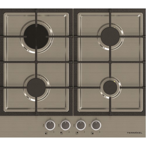 Варочная панель Termikel BH X6147 I NG Brand Termikel Tip alimentare Gaz (natural sau la butelie) Material suprafa?a Inox Numarul de arzatoare 4 La?ime 60 cm Culoare Inox Aprindere electrica integrata Da Siguran?a gaz (Gaz-Control) Da Dimensiuni (LxA) 59?52 cm Dimensiuni de incorporare (LxA) 56х49 cm 1 arzator mare: 3000W 2 arzatoare medii: 1750W 1 arzator mic: 1000W Putere: 7,5 kWh