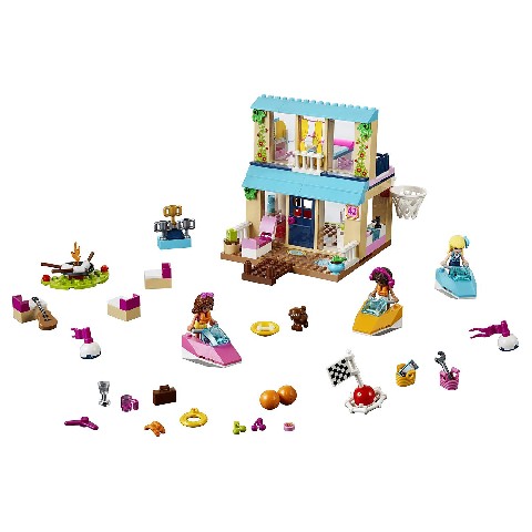 Stephanie's Lakeside House LEGO Juniors "Домик Стефани у Озера" Домик у озера - отличный вариант, чтобы весело провести время на природе в выходные! Стефани, Андреа и Оливия будут кататься на водных мотоциклах по озеру, загорать, а потом смогут подкрепиться поджаренным на костре зефиром. Вместе с ними отдыхом насладится и ваш ребенок - пусть собирает домик, расставит еду, берет фигурки и разыгрывает разные ситуации с этими веселыми леди. На этом приключения не заканчиваются - следующим утром можно поиграть в баскетбол и устроить пикник на берегу озера. Веселье обеспечено! Количество деталей: 215 Рекомендуемый возраст: от 4 до 7 лет