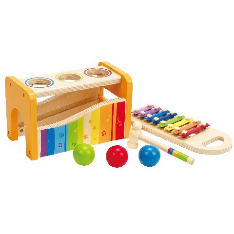 HAPE-POUND AND TAP BENCH Hape Деревянная игрушка "Ксилофон с шариками" Музыкальный набор Hape прекрасное приобретение для малыша от одного года. Ведь набор состоит из трех игрушек, которые помогут в развитии ребенка. Набор изготовлен из высококачественного, экологически чистого дерева, что непременно оценят и ребята, и их родители. Во время игры, детки разовьют моторику, координацию движения и музыкальный слух. Также малыши поймут причинно-следственные связи, познакомятся со звуками и некоторыми цветами. Размер: 15 x 13 x 24 см Материал: Древесина, краска на водной основе Рекомендуемый возраст: 12 месяцев +