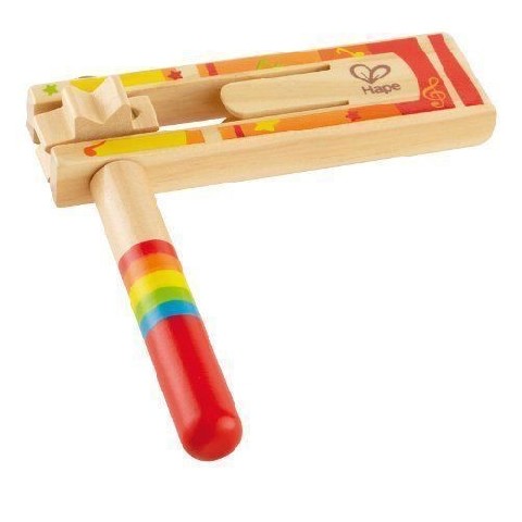 HAPE-HAPPY NOISEMAKER Hape Музыкальная игрушка "Трещотка" Этот оригинальный и интересный музыкальный инструмент выполнен из дерева от великолепного производителя детских экологически чистых игрушек Hape. Игрушку можно использовать для различных игр ребенка, применяя звуковые эффекты как при рассказах сказок, так и для повседневных игр. Эта игрушка изготовлена из экологического и гипоаллергенного материала - натурального дерева. Размер: 3.1 x 13 x 3.5 см Материал: дерево, металл, краска на водной основе Рекомендуемый возраст: 18 месяцев +