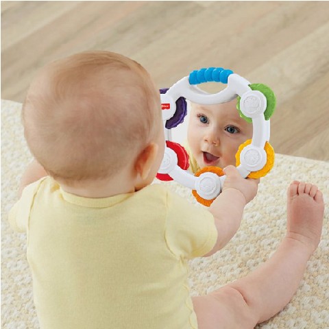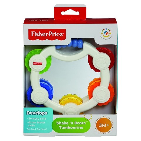 FP Zornaitoare "Tamburina" Mattel Fisher-Price "Бубен с зеркальцем" Каждая мама знает, что дети очень любят все шумящее, стучащее, гремящее и звенящее. Именно поэтому игрушка Бубен от компании Fisher Price наверняка понравится вашему крохе! Бубен выполнен в довольно интересном дизайне с использованием ярких цветов и оснащен удобной ручкой. Но самое интересное - в центре игрушки расположено зеркало. Только представьте восторг любопытного малыша, когда он увидит свое личико в отражении! Однако вы можете быть абсолютно спокойны за здоровье вашего ребенка - зеркало полностью безопасно для него. Рекомендуемый возраст: 3 месяцев +