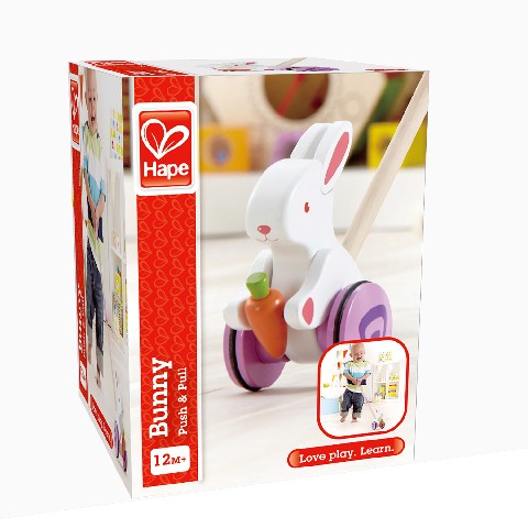 HAPE-BUNNY Hape Игрушка-толкач "Заяц" Деревянная игрушка-толкач "Заяц" качественно изготовлена из безопасных материалов. Она порадует ребенка, улучшит координацию рук, зрительное восприятие, поможет развить творческие навыки и заставит больше двигаться. Подходит для детей, которые уже начали ходить! Игрушку можно толкать или тянуть, благодаря удобной длинной ручке. Дети не играют, чтобы учится, они учатся, потому что играют! Игрушка-толкач вдохновляет детей на изучение и исследование мира в котором мы живем. Материал: Дерево Pазмеры: 18 x 18 x 24 см Рекомендуемый возраст: 12 месяцев +