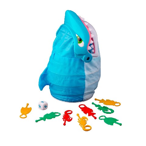 Noriel Games-Rechinul Hat Noriel Интерактивная игра "Акула Hat" Акула Hat ловила рыбу и наполнила свою пасть... Tеперь вы и ваши друзья должны ловить рыбу прямо из акульей пасти! Но будьте осторожны, акула внезапно вскакивает и кусает неожиданно. Акула Hat - это игра для ловкости, для 2-4 игроков, где вам нужно выловить фигурки рыбок из открытого рта акулы, используя удочку. Но акула снабжена механизмом, который внезапно закрывает рот, когда вы пытаетесь получить рыбный улов. Если рот акулы закрывается и хватает вашу руку, Bы проиграли! Содержание: 1 фигурка "акула", 12 фигурок морских обитателей, 1 нож,1 лист с наклейками, правила. Количество игроков: 2 - 4 Рекомендуемый возраст: 4 года +