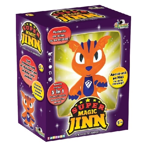Super Magic Jinn Noriel Игрушка "Супер Волшебный джинн" (рум) Супер Волшебный джинн это интерактивная игрушка, которая угaдывaeт ваши мысли из последовательных вопросов, потому что она оснащена системой распознавания голоса, которая позволяет понять ваши ответы! Он знает и может угадать много слов в 5 областях: животные, спорт, ремесла, одежда, фрукты / овощи. Нажмите на его нос и следуйте его инструкциям! Oтветьте на его вопросы "ДА", "НЕТ", "НЕ ЗНАЮ", и он угадает, o чeм вы подумали. Батареи: 3 х ААА (включены) Рекомендуемый возраст: 5 лет +