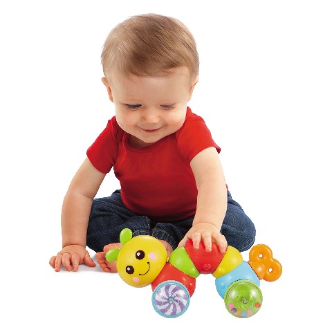 Noriel Bebe-Omida isteata Noriel Развивающая игрушка "Смешная гусенчка" Гусеница знает много трюков! Если нажать на задние колеса она убегает! У головы и хвоста есть колеса, которые весело гремят и перекатываются шарики! Игрушка идеально подходит для детского развития, потому что она стимулирует непосредственно самый важные органы чувств: слух, зрение и осязание. Рекомендуемый возраст: 18 месяцев +