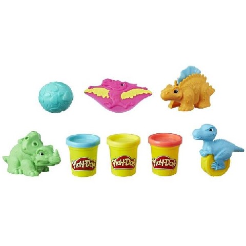 PD DINO TOOLS Hasbro Play-Doh "Малыши-Динозаврики" Самое время познакомиться с таинственным миром динозавров. Он включает в себя три баночки с пластилином разных цветов из специального гипоаллергенного состава, который не прилипает к рукам, не оставляет следов на различных поверхностях и является абсолютно безопасным для здоровья ребенка. А также три детализированные фигурки рептилий и одно яйцо, в котором живет еще не вылупившийся динозаврик. Комплект подходит для детей от 3-х лет.