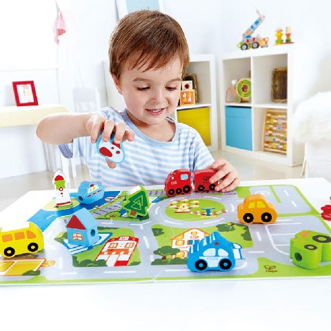 HAPE-BUSY CITY PLAY SET Hape Деревянная игрушка "Город" Игра "Город" - это развивающая игра для деток начиная с двух лет. Игра сделана в виде паза, на который малышу предстоит расставить детали набора, а также правильно собрать сам пазл. Отличный подарок для малышей, как для мальчиков, так и для девочек. Коврик - пазл и множество разных элементов - дома, машинки, деревья, сделают любую игру очень интересной и занимательной. Играя, ребёнок сможет познакомится с элементами города и выучить их названия, что будет развивать память и мышление. Материал: Дерево, краска на водной основе Pазмеры: 26 x 6 x 24 см Рекомендуемый возраст: 24 месяцев +