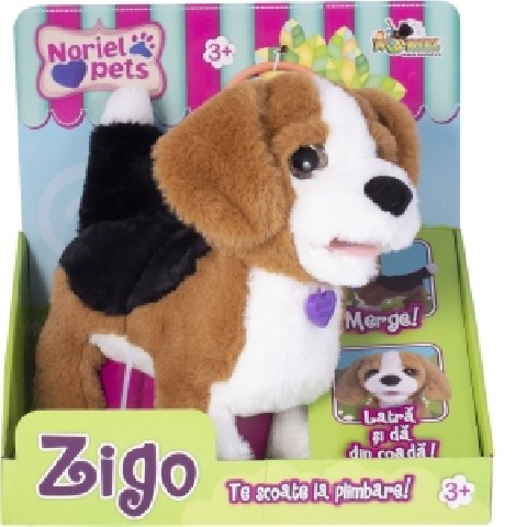 Noriel Pets-Zigo Noriel Pets Щенок "Zigo" Зиго любопытный и смелый щенок, он любит все исследовать! Возьмите его на прогулку и пообщайтесь с ним с помощью поводка: положите его на пол и нажмите кнопку рычага вверх, чтобы он шел впереди или потяните за ручку, чтобы заставить его лаять или вилять хвостом! Чтобы остановить щенка, поставьте рычажок в середину. Вес: 550 г Батарейки: 4 x AA (не входят в комплект) Рекомендуемый возраст: 3 года +