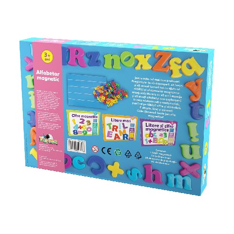 Alfabetar Magnetic 2018 Noriel Игра "Магнитный алфавит" (рум) Научитесь писать и читать, размещая пластиковые фигурки (большие и маленькие буквы и знаки препинания) на доске. Все части содержат магниты, которые позволяют им фиксироваться на доске прямо там, где вы их закрепите, а также легко отделяться. Таким образом, вы можете упорядочить буквы и знаки препинания любым способом и всякий раз, когда вы хотите писать слова и предложения! Набор содержит: - 1 магнитная доска - 52 больших букв - 90 строчных букв - 20 знаков препинания. Рекомендуемый возраст: 3 года