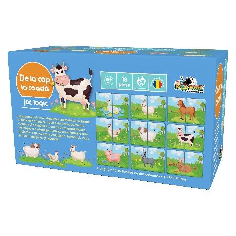 Noriel Games-De la cap la coada Noriel Логическая игра "От головы до хвостa" Откройте для себя самых привлекательных животных на ферме! Вы получите 9 иллюстрированных картинок с любимыми животными: коза, лошадь, курица, овечка, корова, свинья, ослик и кролик! Содержание: 18 карточек Рекомендуемый возраст: 18 месяцев +