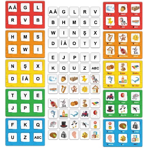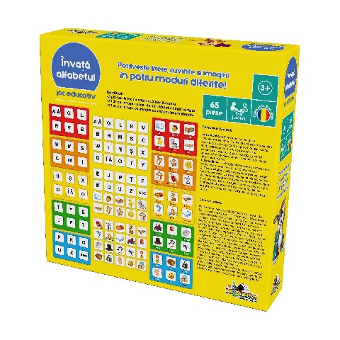 Noriel Games-Invata Alfabetul Noriel Обучающая игра "Выучи алфавит" (pум) Изучите алфавит в игре! Возьмите иллюстрированные касеты и найдите буквы и карточки изображений, которые соответствуют вашим касетам. Покройте карточками соответствующими картинки . Выигрывает первый игрок, который первый запонит свою касету. Cодержание: - 5 касет с карточками, которые иллюстрированны с двух сторон - 30 карт с буквами на румынском языке - 30 карт с изображениями, соответствующими буквам. Рекомендуемый возраст: 3 года +