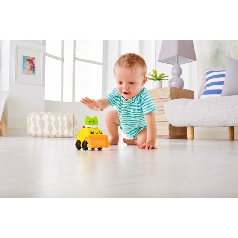 FP Rattle&Roll Cars Mattel FP "Зверьки на машинках" (в асс) Малыши легко и с удовольствием будут играть этими машинками и веселыми зверятами, которые так хорошо подходят для маленьких ручек! Когда ребенок нажимает на зверька-водителя - каждая из 3-х машинок в ассортименте показывает свой особый талант: закрывает глаза, крутит пропеллером или движет ковшом. Игрушка развивает ловкость и движения, а также сенсорные навыки. Рекомендуемый возраст: 6 месяцев +