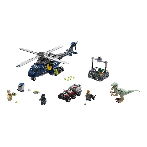 Blue's Helicopter Pursuit LEGO Jurassic World "Погоня за Блю на вертолёте" Динозавра Блю нужно поймать и тут не обойтись без вертолета! Пилот быстро прибудет на место, где обнаружили динозавра и спустит клетку. Теперь нужно словить зверя – сначала используется выстрел оружия с уколом, который его усыпит, а уже после можно перенести или перетащить тело в клетку. Пока он не проснулся, стоит забрать яйцо, поместить его в кабину машины, подцепить клетку к вертушке и перенести динозавра на его место. Получилось? Значит, задание ваш ребенок выполнил на отлично! Всего 397 деталей. Детям от 7 лет до 12 лет.