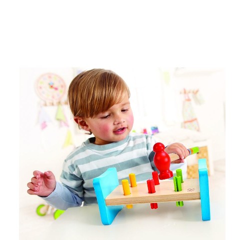 HAPE-FIRST POUNDER Hape Развивающая игрушка "Cтучалка" Если ваш ребенок любит ходить и стучать, то предложите малышу прекрасную игрушку "Cтучалка" от Хапе. Ребенок возьмет в руки молоточек и будет забивать гвоздики в подставку, что доставит много удовольствия для малыша. Игрушка изготовлена из экологически чистого дерева, что очень важный фактор при выборе детских товаров. Малыши, во время игры, познакомятся с цветами и формами. Также игра поможет развить моторику, координацию, ловкость, логику, внимательность и усидчивость. Посчитайте гвоздики вместе с ребенком и познакомьте малыша с цифрами. Детки получат массу удовольствия, забивая детали. Pазмер: 20 x 9.5 x 9.5 см Материал: Древесина, краска на водной основе Рекомендуемый возраст: 12 месяцев +