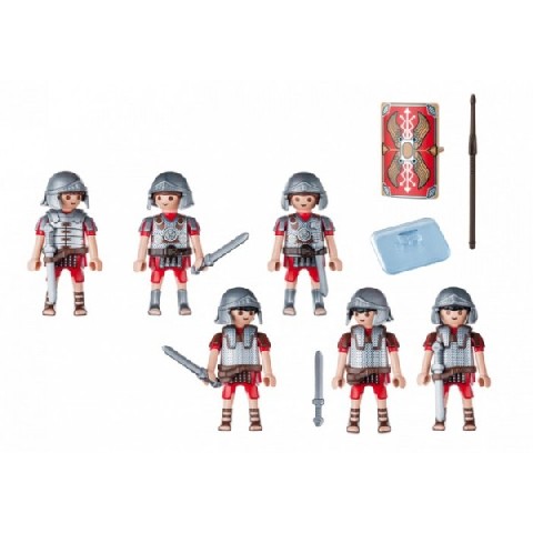 Roman troop Playmobil History "Римский солдат" Осторожно, щиты к бою! Быстро римские войска переходят в боевую позицию и ставят свои щиты перед телами и над их головами. А теперь медленно идите вперед и всегда держите щит вверху для защиты! Рекомендуемый возраст: 4 - 10 лет