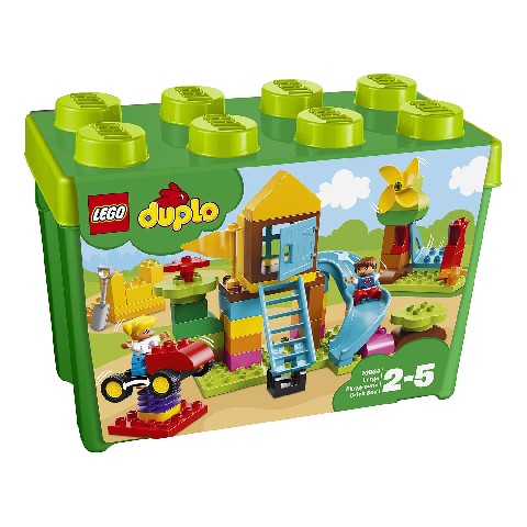 Large Playground Brick Box LEGO DUPLO "Большая игровая площадка" Ребенку очень понравится игра с набором "Большая игровая площадка”! Тут множество возможностей для сюжетно-ролевых игр с персонажами и функциональных аттракционов: качели, горки, машинка на пружине и мельница. Мир строительства в руках ребенка благодаря ярким кубикам и красочным деталям: в виде окон, дверей, лестниц и цветочков. Из элементов набора можно соорудить также и свои поделки. Например, из мельницы можно сделать вертолет с настоящим пропеллером. Такие игры развивают воображение детей и надолго занимают их внимание, помогая раскрыть творческие способности. В комплекте: 2 минифигурки: мальчик, девочка. Всего 71 деталь. Детям от 2 лет до 5 лет.