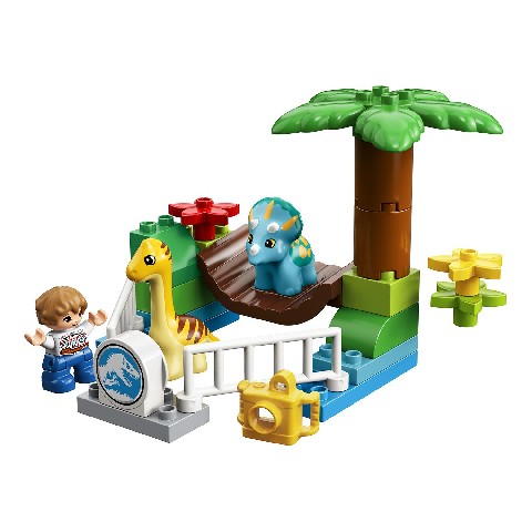 Gentle Giants Petting Zoo LEGO Duplo Jurassic World "Парк динозавров" Набор "Парк Динозавров" LEGO Duplo - специально для маленьких ценителей парка Юрского периода. В коробке столько разных деталей! Из них соберется вольер для динозавров, где они будут хорошо проводить время рядом с пальмой и цветами. Они стоят за аккуратной оградой, через которую разглядывать динозавров могут все желающие - смотрите, не подходите слишком близко. А для особых любителей зверей есть фотоаппарат, чтобы сделать снимок на память о посещении вольера. Количество деталей: 24 Детям от 2 до 5 лет.