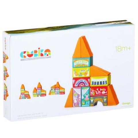 Cubika Oraselul Fabulos LKM-1 Cubika Деревянный конструктор "Сказочный город" LKM-1 "Сказочный город" LKM-1 - это деревянный конструктор, состоящий из деревянных деталей разного цвета, на которых нарисованы различные элементы дома (окна, двери и т.п.). На коробке нарисованы несколько вариантов сбора «домиков». Игрушка развивает мелкую моторику, мышление, цветовосприятие, внимательность. Количество деталей: 13 Рекомендуемый возраст: 18 месяцев +