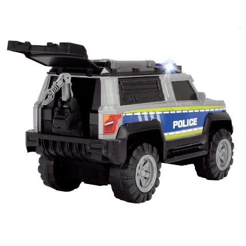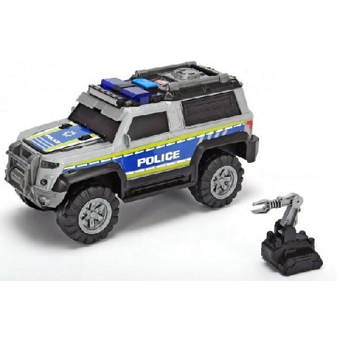 Dickie auto Jeep Politie 30 cm Dickie "Полицейский Джип" со звуковыми и световыми эффектами "Полицейский Джип" будет прекрасным подарком для любого мальчишки, что любит придумывать разнообразные истории и хочет попробовать себя в качестве спасателя. К особенностям модели можно отнести наличие световых и звуковых эффектов, открывающиеся двери и задний багажник, куда можно поместить все полицейское оборудование. В комплекте также идут аксессуары, что в совокупности, добавит игре большей реалистичности и сделает ее невероятно захватывающей и веселой. Вместе с автомобилем Полиция от Dickie, помогите вашему ребенку стать настоящим героем! Размер: 30 см Комплектация: 1 машинкa, полицейское оборудование Питание: 2 х 1,5V R6 (входят в комплект) Рекомендуемый возраст: от 3 лет