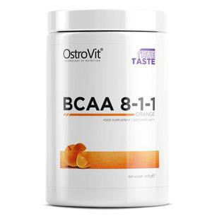 Ostrovit BCAA 8:1:1 400 грамм Описание BCAA 8:1:1 OstroVit (400 гр) - Лейцин (Leucine) - Изолейцин (Isoleucine) - Валин (Valine) Аминокислоты с разветвлёнными боковыми цепочками — основной материал для построения мышечных тканей. Эти три аминокислоты составляют 35% всех аминокислот в мышцах и принимают важное участие в процессах анаболизма и восстановления, подавляют катаболические процессы. Незаменимые аминокислоты не могут синтезироваться в организме, поэтому человек их может получать только с пищей и специальными добавками. Аминокислоты с разветвлёнными боковыми цепочками можно рассматривать как основное «топливо» для мышц, которое повышает спортивные показатели, улучшает состояние здоровья, к тому же они абсолютно безопасны для здоровья. Питательная ценность (100 гр): Калории: 1340 кДж / 320 ккал Белок: 80 гр Жиры: 0 гр Углеводы: 0 гр BCAA (на порцию 10 гр / на 100 гр): L-лейцин 8000 мг* (6400 мг) / 80 гр* (64 гр) L-изолейцин 1000 мг* (800 мг) / 10 гр* (8 гр) L-валин 1000 мг* (800 мг) / 10 гр* (8 гр) * Для версии без вкуса Расфасовка, масса нетто — 400 гр. Порция 10 гр. Количество порций в упаковке 40.