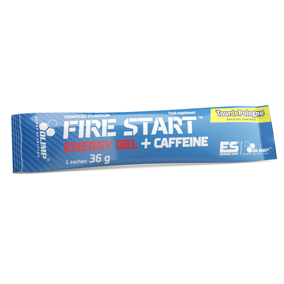 OLIMP Fire Start Energy Gel 35 g Продукт предназначен для взрослых, физически активных людей, в частности, выполняющих очень интенсивные или длительные физические упражнения. Гель обеспечивает организм углеводами, минералами, тиамином, таурином и кофеином из экстракта семян гуараны.