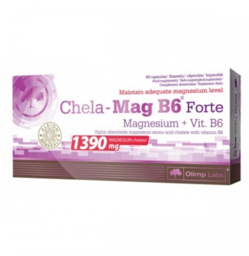 OLIMP Chela-Mag B6 Forte Mega Capsules 60 caps /1390mg / 60 caps CHELA-MAG B6 FORTE MEGA CAPSULES 60 CAPS /1390 MG Пищевая добавка- Чела-Mag B6 форте содержит наиболее рассасывающиеся форму магния (аминокислота хелат в повышенной дозе 1390 мг магния хелат в одной капсуле MEGA CAPS). Кроме того, Чела-Mag B6, обогащен витамином В6, который работает с магния в обмене веществ и усиливает его работу. Olimp Чело-Mag B6 Forte капсула Mega позволяет покрыть спрос на магнии, необходимый элемент для интенсивных тренировок с отягощениями, участвующая в процессах энергии, после тренировки регенерации, процессы памяти и концентрации внимания, повышение устойчивости к стрессу. Почему, магний очень важен для нашего организма? Магний входит в группу makromineralow, компоненты, необходимые в повседневной жизни, в значительных количествах, эго часто называют элементом жизни и энергии. Многочисленные научные исследования подтверждают, что он является одним из четырех наиболее важных для нормального функционирования нашего тела катионов. Магний является минеральным элемент, необходимый для поддержания гомеостаза, биохимическое равновесие организма. Этот элемент участвует в более чем ферментативных реакциях 300, протекающих в наших клетках каждый день. Одним из главных ролей, участвует в синтезе топливных элементов, необходимой в ежедневной работе организма. Вот почему, когда не хватает магния мы чувствуем постоянно усталость. Кроме того, этот минерал участвует в транспортировке различных компонентов клеточных мембран, среди прочего, помогает поддерживать правильный баланс между натрием и калием. Магний является необходимым элементом повседневной работы наших мышц и нормальному функционированию нервной системы. Этот минерал помогает нормальному функционированию сердца и всей сердечно-сосудистой системы. Что может привести к дефициту магния Дефицит этот элемент является очень распространенная проблема, затрагивающая почти половина населения. С развитием цивилизации и прогрессией загрязнения окружающей среды, слишком активный образ жизни, постепенно появляются дефицит магния, которые со временем становятся все глубже. Есть также много факторов, которые могут повысить выход магния из организма. Чела-Mag B6 Forte капсулы Mega представляет собой продукт, предназначенный для людей с повышенной потребностью на магний: активный образ жизни подверженость чрезмерный стресс тяжелая физическая работа и психическая занятия физически активныммы виды спорт К сожалению, в наших диетах часто слишком мало магния и они не обеспечивают достаточное количество этого самого ценного минерала. Почему Чела-Mag B6 Forte капсулы Mega форте? Отличное качество для пополнения дополнительного дефицита магния. Уникальный и инновационный продукт, который содержит магний в аминокислотно хелатной форме известной фирмы Альбион в увеличенной дозе 1390 мг - в том числе 250 мг магния в капсуле MEGA CAPS АЛЬБИОН магний в аминокислотной хелатной форме является одной из форм высоко биодоступной и эффективной, подтвержденная в клинических испытаниях. Неорганические формы магний плохо рассасывающийся, дополнительно связывает воду в кишечнике и может привести к диарее. После приема внутрь солей магния распадаются на ионы обеспечивают заряд, который, как правило, нейтрализовать нужно как можно быстрее, только очень небольшая часть всасывается в кишечнике. Ма