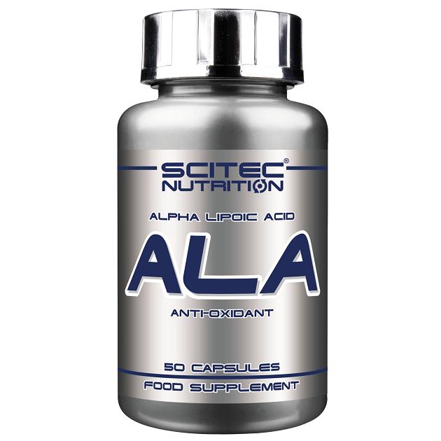 SCITEC ALA 50 капсул ALA от компании Scitec Nutrition – это активное антиоксидантное средство, эффективно повышающее защитную систему организма. Данный продукт основан на качественной чистой альфа-липоевой кислоте, которая обладает мощными детоксикующими свойствами. Продукт также станет отличным помощником спортсменам, находящимся на диете, так как он способствует регуляции уровня сахара в крови. ALA от Scitec Nutrition, как сильный антиоксидант, очистит организм от вредных свободных радикалов. Состав ALA от Scitec Nutrition: Количество порций в упаковке: 50 Состав питательных веществ в одной порции (1 капсула) продукта: Альфа-липоевая кислота — 250 мл Ингредиенты:Альфа-липоевая кислота, желатин, сыворотка, терра Альба (в свою очередь состоит из либо гипса, либо магнезии и либо каолина), стеарат магния, стеариновая кислота Рекомендации по применению: Специалисты интернет-магазина Mnogolet.com.ua рекомендуют принимать 1 порцию (1 капсула) ALA от Scitec Nutrition раз в день. Примечание Проконсультируйтесь с врачом перед применением ALA от Scitec Nutrition на предмет непереносимости отдельных компонентов. Форма выпуска: капсулы Страна-производитель: США Срок годности: смотреть на упаковке