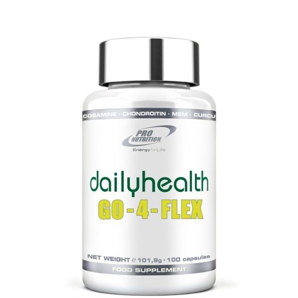 Pro Nutrition GO-4-FLEX 100 капсул Работа суставов зависит от протекания обменных процессов в суставных тканях. С возрастом или от постоянных нагрузок хрящевая ткань истирается и медленнее восстанавливается, что может в свою очередь может быть причиной возникновения травм при повышенных нагрузках. Предотвратить подобную ситуацию помогает прием веществ, которые требуются для восстановления хрящевой ткани. GO-4-FLEX прекрасно справляется с этой задачей, поставляя организму недостающий материал для «ремонта» хрящевой ткани. Повышается синтез коллагена в хрящевой ткани; Улучшаются обменные процессы; Хрящевая ткань суставов ног, рук и позвоночника получает дополнительное питание для повышения способности выдерживать большие нагрузки; Стимулируется процесс регенерации хрящевой ткани. Действующее вещество куркумы – куркумин. Куркумин эффективно устраняет воспалительные процессы, которые как раз и лежат в основе заболеваний. Молекулы куркумина могут воздействовать практически на все клетки организма, нормализуя их работу, тем самым замедляя процессы старения всего организма и предотвращая тяжелые заболевания. В 4-х капсулах: Глюкозамин сульфат – 1500 мг; Хондроитин сульфат – 1000 мг; Метилсульфонилметан (MSM) – 600 мг; Куркумин – 300 мг. Желатин, диоксид кремния, стеарат магния, диоксид титана. По 2 капсулы два раза в день (можно до еды, во время и после еды). Для достижения наилучших результатов, принимать в течение 4-6 недель.
