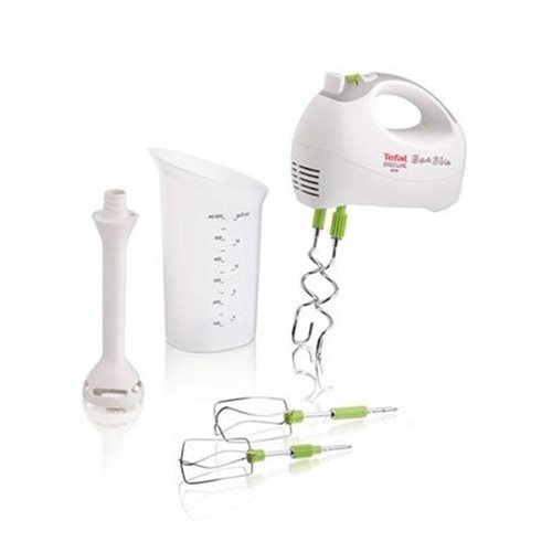 Миксер TEFAL HT4111 Мощность: 350 Вт Количество скоростей: 5 Режим Turbo: есть Крюки для теста: есть Венчики для взбивания: есть Материал чаши: АБС-пластик