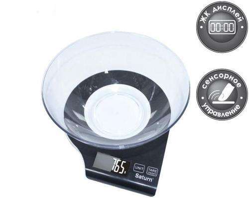 Весы кухонные Saturn ST-KS7803 Тип: электронные Конструкция тары: платформа Максимальный вес , кг: 5 Цена деления , г: 1 Погрешность , г: 1 Индикация перегрузки: да Индикация разрядки батарей: да Звуковой сигнал : да Автоматическое выключение: да Автоматическое включение: да Функция сброса веса тары : да Материал платформы: пластик Тип батарей: 3 x AAA (LR03)