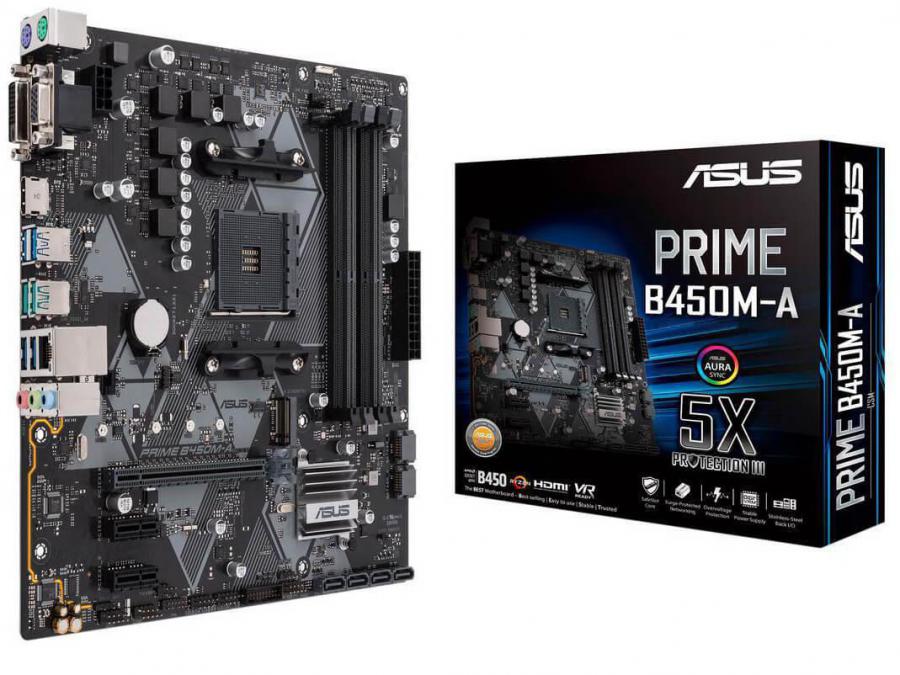 Материнская плата ASUS PRIME B450M-A AMD B450, AM4, Dual DDR4 3466MHz, PCI-E 3.0/2.0 x16, HDMI/DVD-D/D-Sub, USB 3.1, SATA RAID 6Gb/s, M.2 x4 Socket, SB 8-Ch., GigabitLAN, LED lighting материнская плата форм-фактора microATX сокет AM4 чипсет AMD B450 4 слота DDR4 DIMM, 2133-3200 МГц разъемы SATA: 6 Гбит/с - 6.