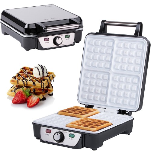 Вафельница First 005305-3-WI Вафельница First FA-5305-3 WI Мощность: 1100 Вт 4 поверхности для приготовления вафель 22х22 см. Керамическое покрытие Регулируемый термостат Корпус из термостойкого пластика, декорированного нержавеющей сталью Световые индикаторы температуры/питания
