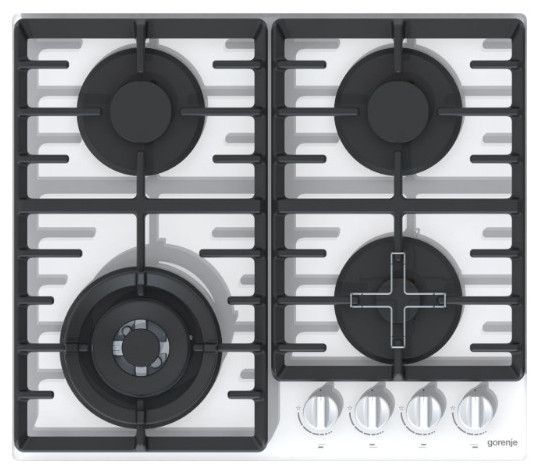 Варочная панель Gorenje GTW641W Материал поверхности: Стекло Количество конфорок: 4 Материал решеток: Чугун Газ-контроль: Есть Габариты (ВхШхГ): 13,6х60х52 см