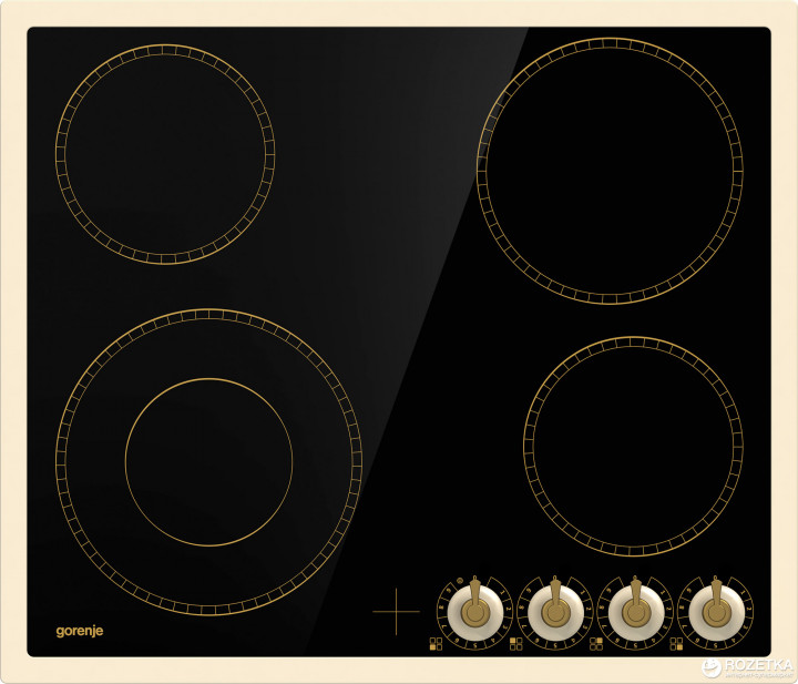 Варочная панель Gorenje EC 642 CLI электрическая варочная панель стеклокерамическая поверхность керамические конфорки двухконтурная конфорка переключатели поворотные индикатор остаточного тепла независимая установка габариты (ШхГ) 59.5x51 см