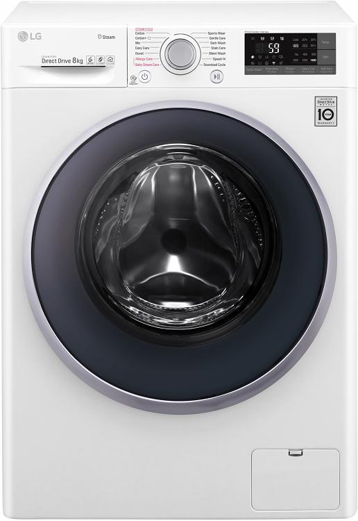 Стиральная машина LG F4J7TY1W Стиральная машина Тип загрузки: фронтальный Макс.загрузка белья: 8 кг Макс.скорость отжима: 1400 об/мин Класс энергопотребления: А+++ Тип управления: электронное Direct Drive WiFi Кол-во программ: 14