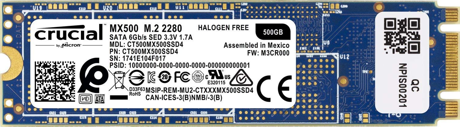 500GB SSD M.2 Type 2280 Crucial MX500 CT500MX500SSD4, Read 560MB/s, Write 510MB/s, (solid state drive intern SSD/внутрений высокоскоростной накопитель SSD)