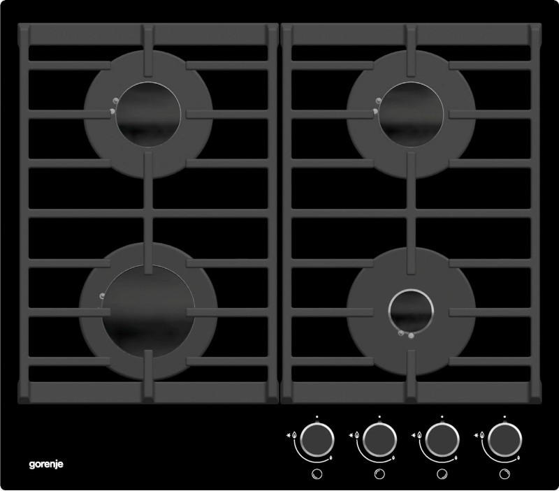 Варочная панель Gorenje GT641UB газовая варочная панель поверхность из закаленного стекла 4 газовые конфорки переключатели поворотные электроподжиг независимая установка габариты (ШхГ) 58.5x51 см